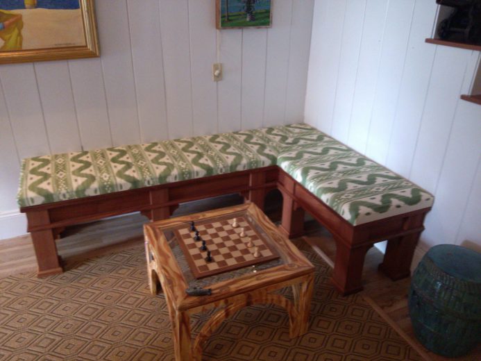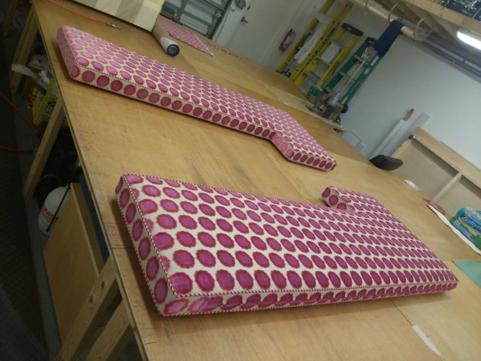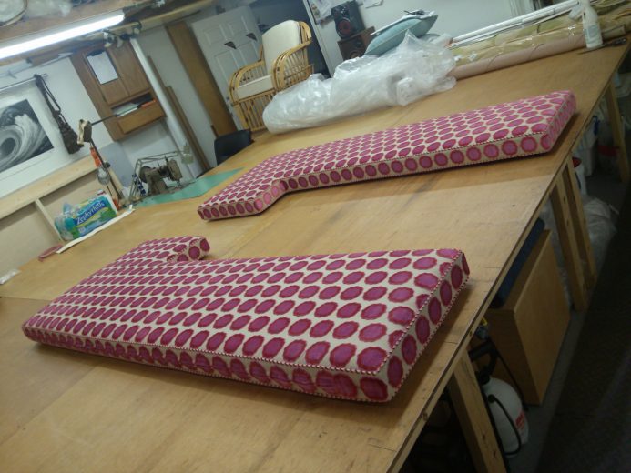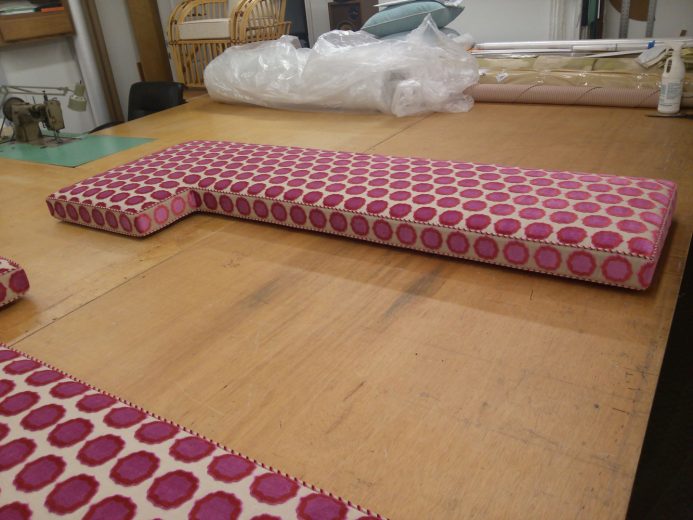 Hutchinson Upholstery offers only the absolute finest in custom cushions, varying in style shapes and size. Design, layout, and pattern placement are details that should be considered. Patterning from scratch is the best way to guarantee a custom fit, outdoor cushions require a foam that does not hold water, and a fabric that repels water, indoor cushions very from the low end foam and Dacron wrap, to the high-end luxury foam with a down feather wrap for the ultimate comfort.