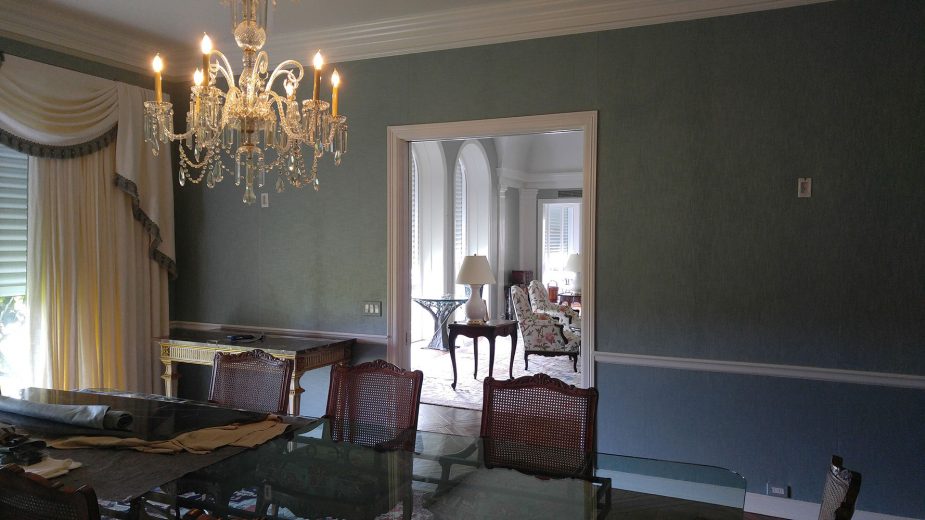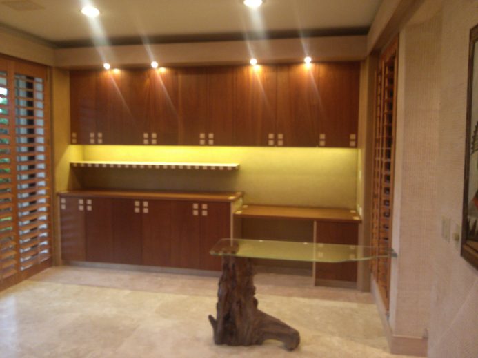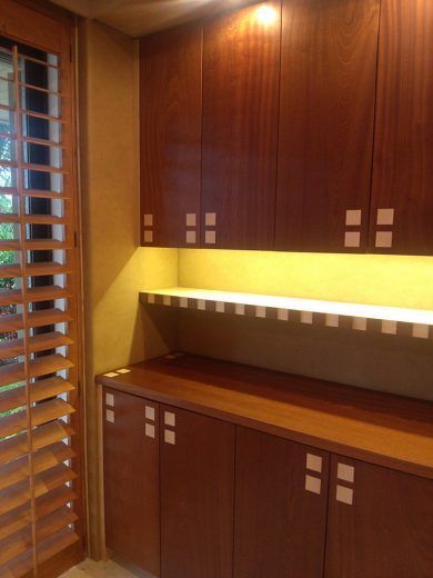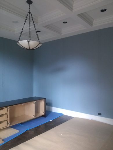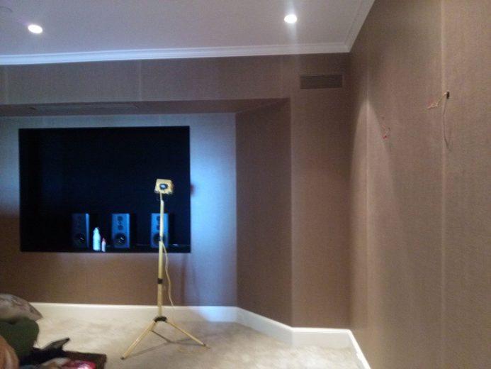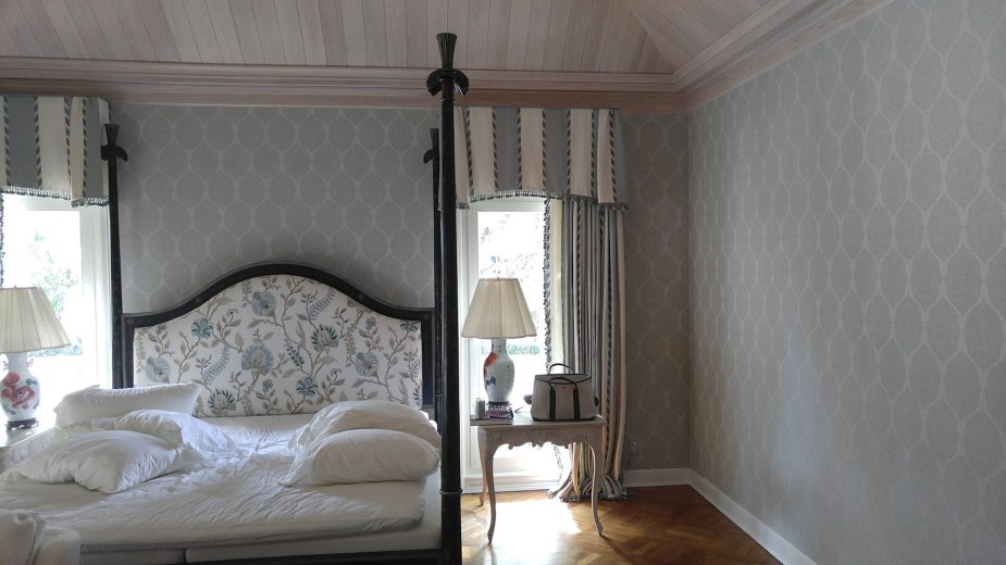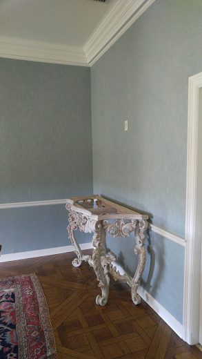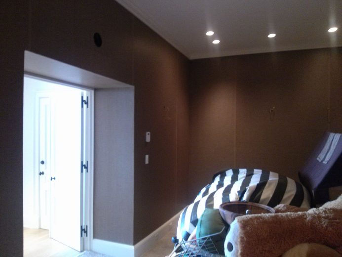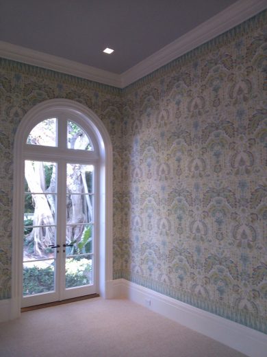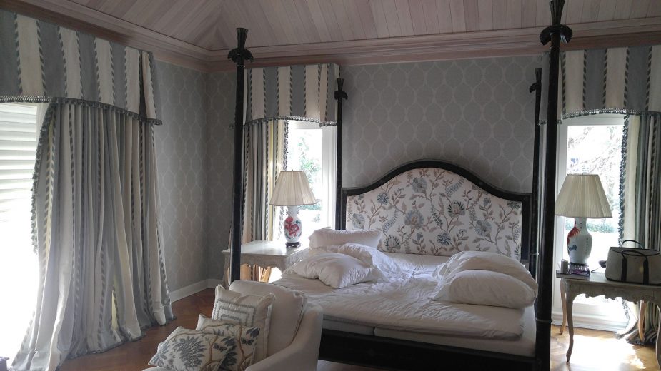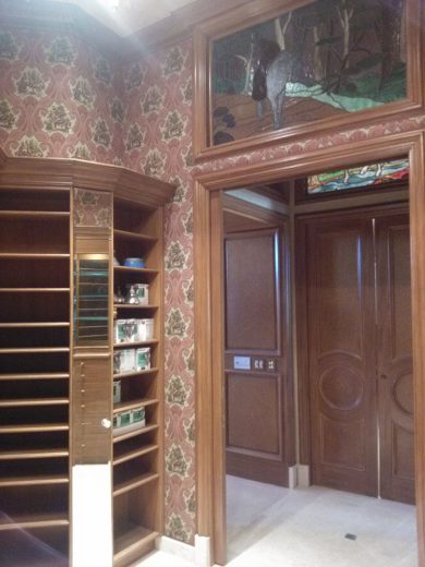 If you are considering upholstery for the walls in your home or work place Jim Hutchinson at Hutchinson Upholstery is THE wall upholstery expert! He will consult with you to determine the best method of application, the type of fabric, and the desired look you want to achieve. Patterns will be matched perfectly allowing for a continuous flow of the repeat along your walls. Any trims will be applied with the utmost care to run straight and true. Layers of under-padding bring an element of softness and texture to the hard wall surface while providing the capability to conceal flaws or irregularities in the walls. The acoustical benefits make upholstered walls the perfect choice for rooms where increased soundproofing is favorable such as home theaters, bedrooms, and dining rooms.